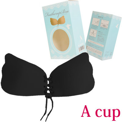 寄せて上げて谷間もメイク♪天使の羽型シリコンブラ「フェザーアップブラ ブラックA」。羽のようなカップがボディに馴染みやすいブラックカラーのモールドブラ!カップ内側は粘着シリコン樹脂、外側はサラリとした肌触りのポリエステル素材です。中央はアジャスターで自在に調整できる編み上げ仕様!胸のボリュームを強調したい場合は少し上目で着用し、紐を持って留め具を上下させるだけで自由に谷間をメイク出来ます。【着用方法】両手でカップを外に向けて反らし、最適な位置にあわせてから外に反ったカップを胸の方向に戻して、ふちが胸につくように指先でなぞって下さい。左右着用後、両手でカップをしっかり押さえて定着させ、留め具をスライドしてお好みで調整して下さい。粘着効果が薄れた際は、一度水洗いし乾燥させてから再度着用して下さい。※サイズは画像を参考にお選びください※通常よりワンサイズ小さめが綺麗に着用できる目安です※Bサイズ(h00037)もございます
