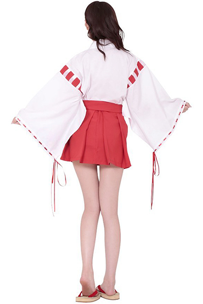 願い事があるなら、まずはお祈りしてね!白着物に赤のパイピングリボンが印象的な、巫女さんのコスチューム。
