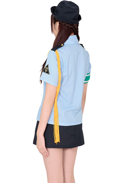 爽やかな清潔感のある水色ブラウスに、スリット入りのタイトなきれい目紺色ミニスカートがセクシー!ネクタイ、腕章、ロープも付いた本格派コスプレ衣装セットです。