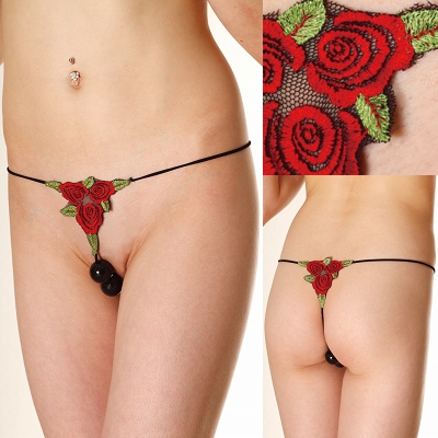 3つの赤いバラ刺繍モチーフを、フロントとバックにあしらい、女性らしさを演出!クロッチ部分に秘密のビーズを隠し持つ、超刺激的なセクシーランジェリーです。