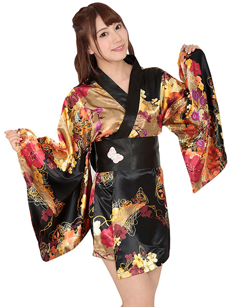 その姿はまるで夜の蝶…!艶やかな色彩が映えるセクシーなミニ着物コスチューム。