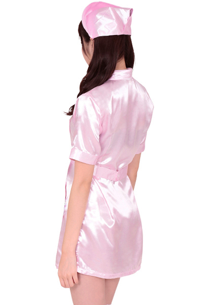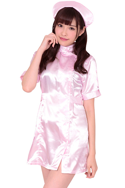 ミニ丈ワンピのギリギリ感と光沢感のあるキュートなピンクカラーが、セクシーさと可愛らしさの両方を演出!フロントはボタン式で下まで開きます。