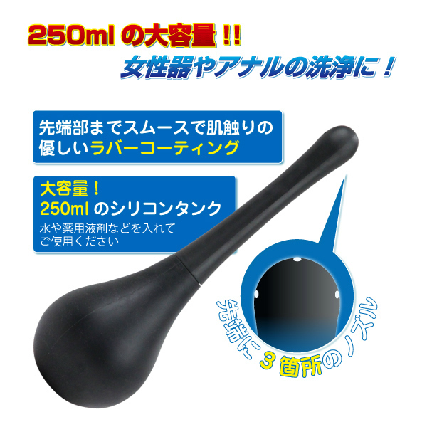 黒くてスタイリッシュ!たっぷり注入、アナルも喜ぶ大容量250mlの洗浄器。