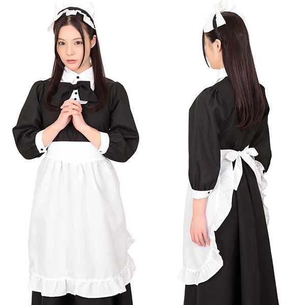 上品なメイドさんを目指すならコレ!絶妙バランスの黒×白カラーで仕上げた、クラシカルなロングワンピのメイド服コスプレ。