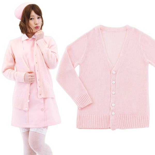 ナース服のコスプレ衣装を持っているなら、ぜひどうぞ!シンプルで可愛いボタンオープンタイプなので、お医者さんの白衣にも似合う薄手のカーディガンです。