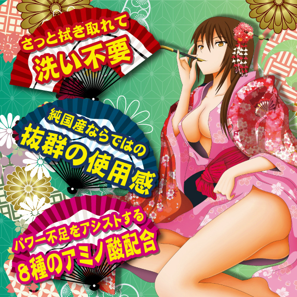 はだけた着物のキャラが色っぽい!8種類のアミノ酸で、勃起力を高める洗い不要ローション。