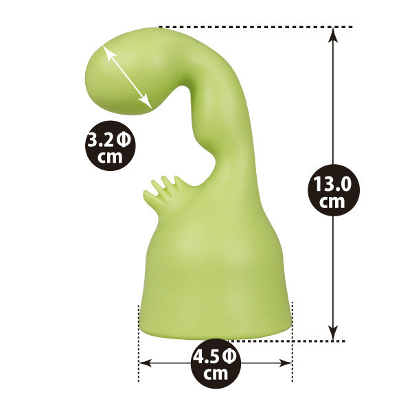 ポップなグリーンカラーの本体は不思議なフォルム!ですが、最大径3.2cmの先端部分がGポットを、さらに根元のクリブラシがクリトリスをしっかりと刺激してくれるんです。