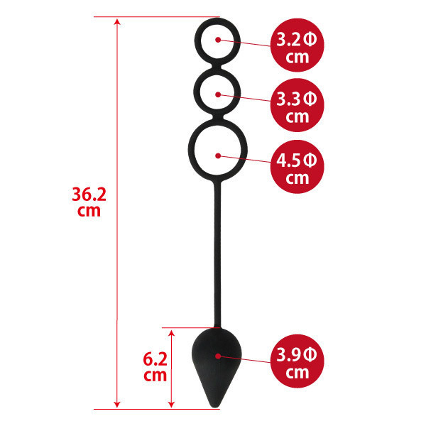 仕様:パッケージ:20.0×13.0×5.5cm 本体:全長:36.4cm 内径小3.1φcm・中3.1φcm・大4.5φcm プラグ部分:6.4×3.9φcm