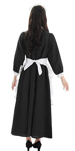 ●ハロウィン仮装に便利●定番の白黒メイドを一瞬ぎょっとするほどスプラッターに…●スカート丈が足首まであるクラッシックな長袖ワンピース●後姿はごく普通●手形ペタペタ・フリルエプロン●血が飛沫したブリムカチューシャ。