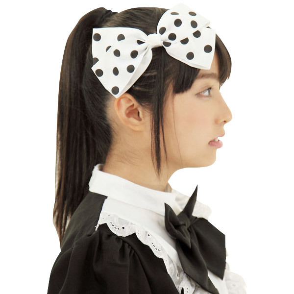 ●白地に黒いドット柄●大きめサイズのリボン●裏側にクリップ付き●主役クラスの存在感。