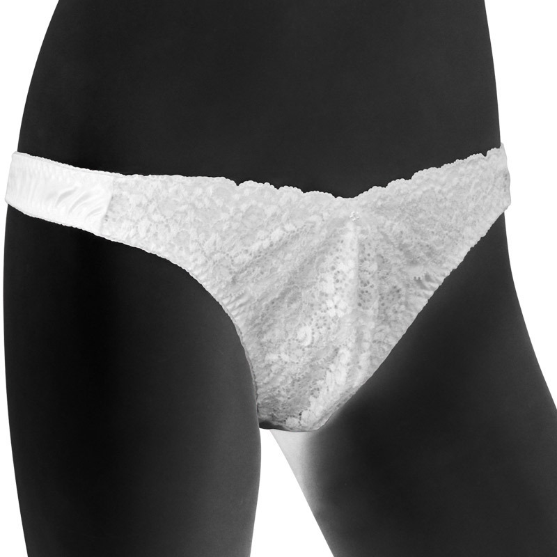 ●メンズのLサイズ●フロントはホワイトレース●バックは光沢サテン仕様●股間ゆったり設計●ハーフバックタイプ●安心の日本製。