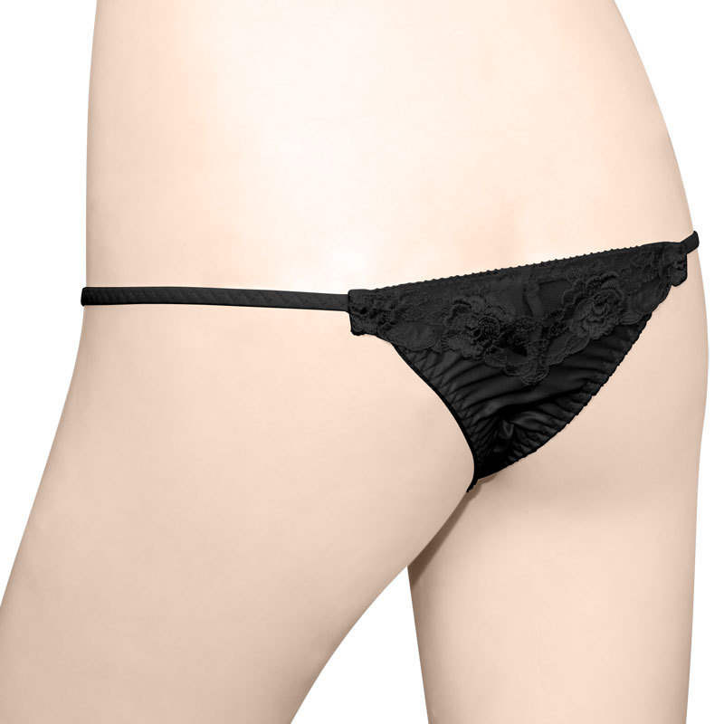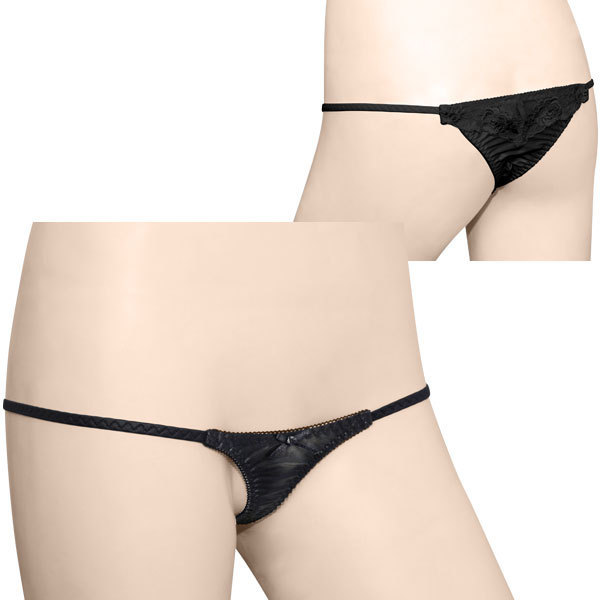 バックフラワー刺繍スーパーマイクロTバック ブラック