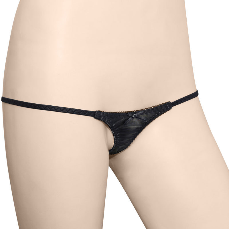 ●大人セクシーなブラックカラー●クシュクシュ感が可愛いギャザー入り●フロント:ミニリボン付き●お尻が丸見えなTバック仕様●Mサイズ。