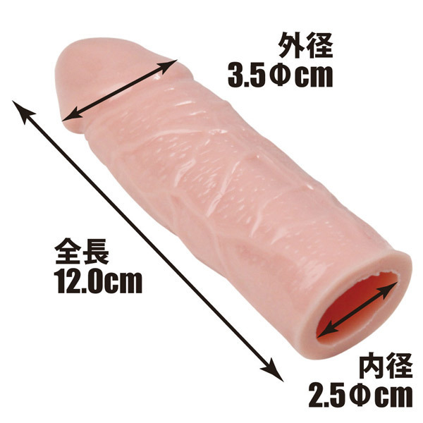 ●全長12cm、外径3.5φcm(内径2.5φcm)●柔軟で耐久性の高いエラストマー素材●浮き出る青筋を模したリアル造形●約5mmにも及ぶ超肉厚仕上げ●直径で1cmのサイズアップが可能。
