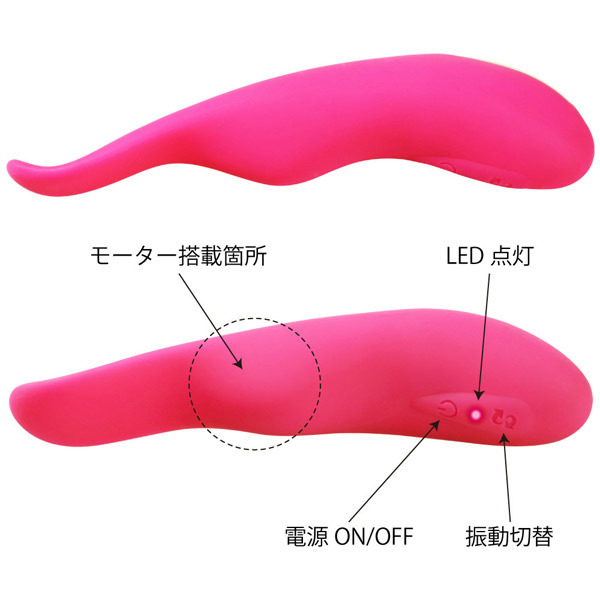 ●高品質シリコン仕様の優しい肌触り●丸みのある愛らしいグリップ部●薄めの先端がGスポットを刺激●中央の内蔵モーターでCスポット(クリ)を刺激●多彩な刺激を生み出す8パターン振動●メンテナンスしやすい生活防水●約2時間の充電で最大1時間稼働●USB充電用ケーブル付属。