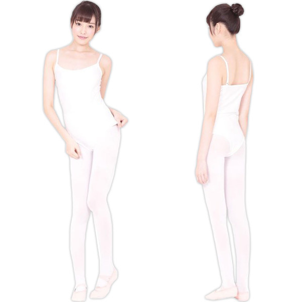 ●レオタード&タイツの2点セット●●清潔感溢れるホワイトカラー●デコルテすっきりなキャミソール型●ボディラインに沿う安定のフィット感●ストラップはアジャスター調節可。