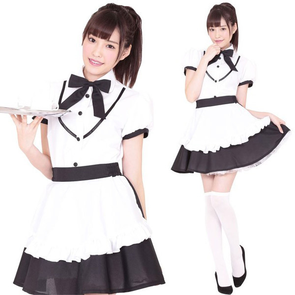 ホワイト×ブラックのカラーのバランスが絶妙!すっきりモノトーンカラーのウェイトレス衣装。