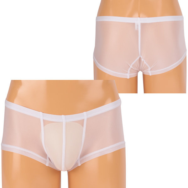 スケスケのホワイトシースルーがセクシーなメンズランジェリー!ボクサータイプでも膨らみのある立体的なフロントデザインなので、締め付けず程良いフィット感で履き心地も良好です。