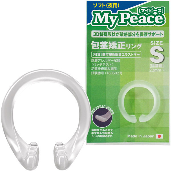 ●柔軟性に富んだエラストマー素材●パッチテストによる品質検査済み●着脱しやすさを考慮したC型リング●両端3D特殊凹凸でズレ・外れ防止●包皮を剥いた状態でカリ下へ装着●リングが包皮を抑えて包茎を強制●内径22mm〜のSサイズ。