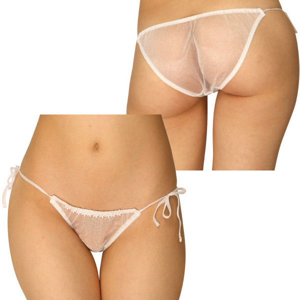 ●スパークハーフ地(ホワイト)●濡れるとさらに透け度アップ●可愛い小花を並べたフロント●フルバックの紐パン仕様●両サイド紐を結んで調整可。