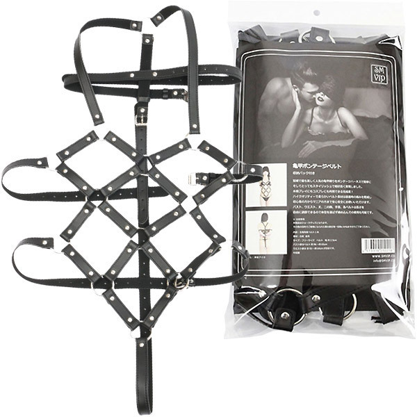 着用するだけで亀甲縛りが完成!初心者さんでも緊縛プレイが楽しめるスタイリッシュなボンテージハーネスの緊縛ベルト。