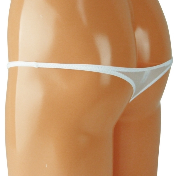 ●極薄のホワイトシースルー●良く伸びるストレッチ素材●お尻丸見えな超ローライズ●サイド脇細のTバック仕様●男性用Sサイズ・日本製。