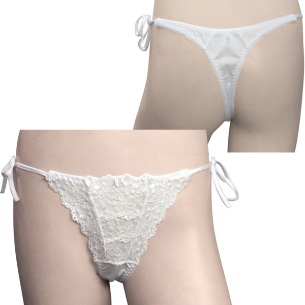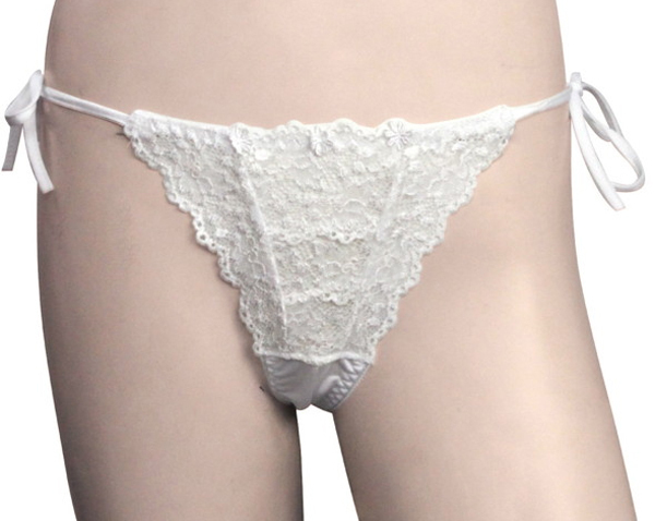 トリコット生地フラワーレース脇紐オープンTバック ホワイト