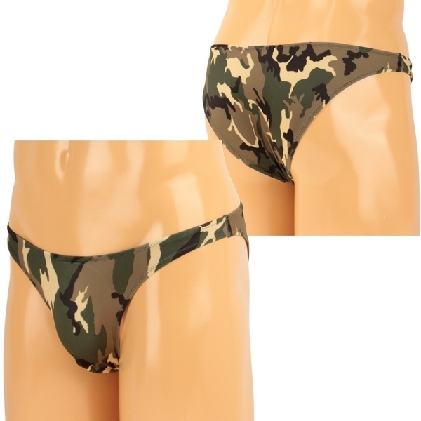 カジュアルな迷彩柄がボディを彩るメンズランジェリー!フロントはゆったり大きめに、バックはスッキリとしたハーフバックでセクシーな仕上がりです。