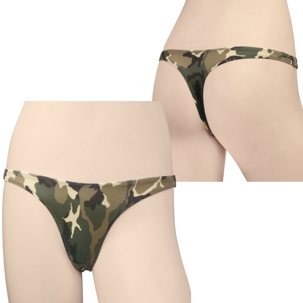 ミリタリー女子の魅せパンにも♪全面プリントの迷彩柄レディースTバックショーツ。