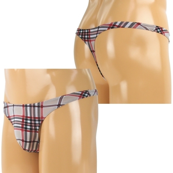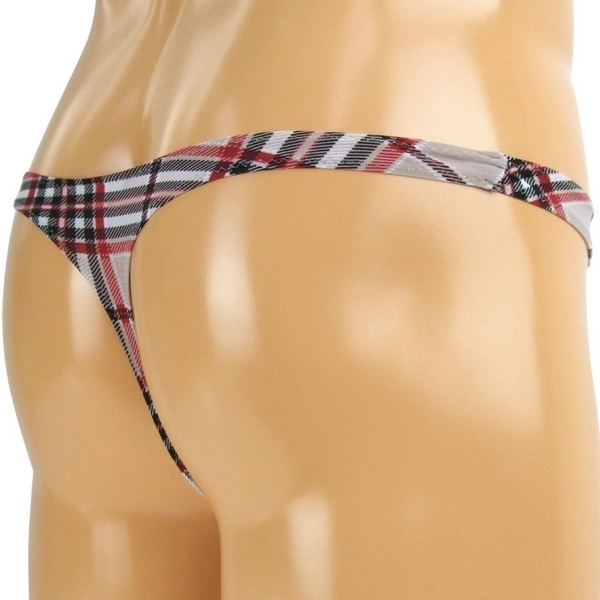 タイトにフィットする男性用ランジェリー!セクシーなTバックスタイルでもチェック柄プリントならカジュアルに着こなせます。