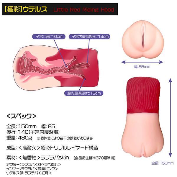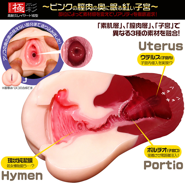 部位によって素材感を変え、リアリティを徹底追求した極彩トリプルレイヤード構造!リアルなポルチオ感触を味わえるウテルスオナホール。