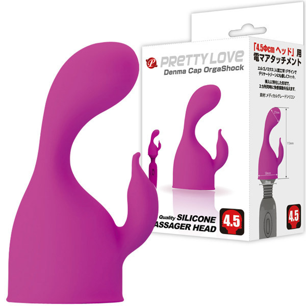 電マをさらに気持ちよくバージョンアップ♪挿入に特化した電マ用シリコンアタッチメント「プリティラブ デンマキャップ オルガショック」。