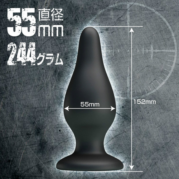 高品質シリコン製のボディは最大径5.5cmの極太サイズながら、流線型で挿入しやすいので拡張にも最適!底部にはしっかり固定できる強力吸盤付き。