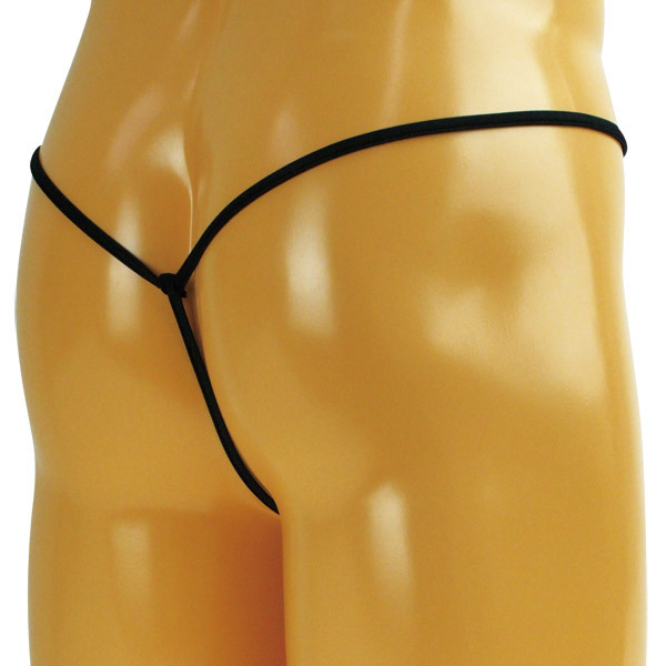 ●クールな大人のブラックカラー●水着にも使われるウェット生地●ストリングのみで繋いだフロント●すっぽり包む筒状ハーフポケット●Vバックのストリングデザイン。