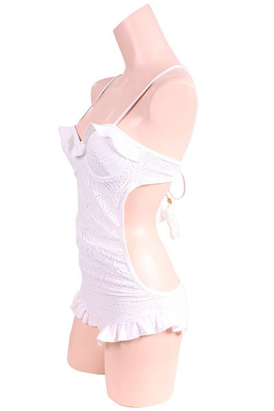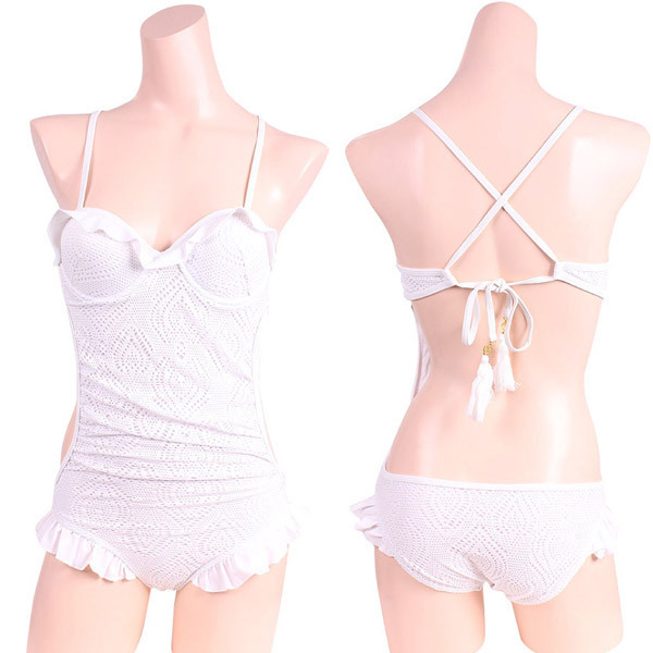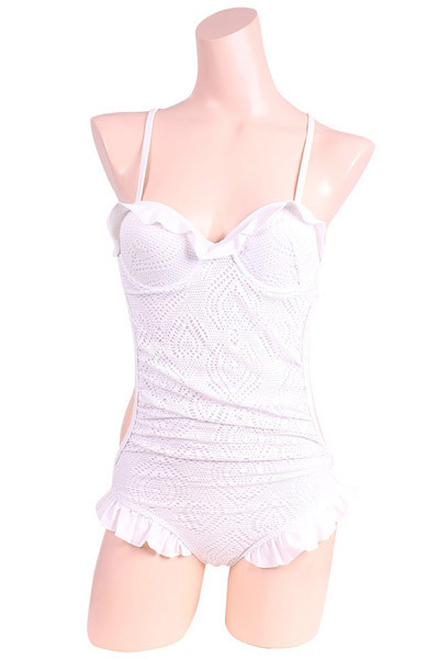 純白のビーチで周りと差をつける、本格スイムウェアシリーズ♪フェミニンなストレッチレースの重ねた2枚仕立てのワンピース。