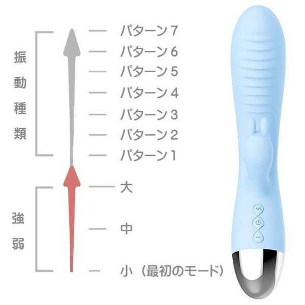 ヒダを刻んだ本体の先端とウサギの耳をイメージしたクリバイブそれぞれに、パワフルな高性能モーターを内蔵!静音設計で周囲を気にせず使えます。