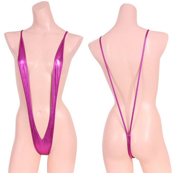 見えそうで見えないギリギリ感がたまらない!超セクシーなメタリック素材のサスペンダーショーツ「V型メタリックプレイスーツ ローズ」。