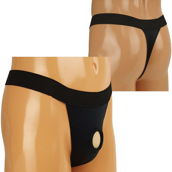 腰周りは太めのゴムヒモを採用し、ガッチリとした安定感のあるはき心地!シンプルでクールなブラックカラーデザインの男性用オープンランジェリーです。