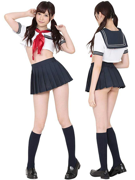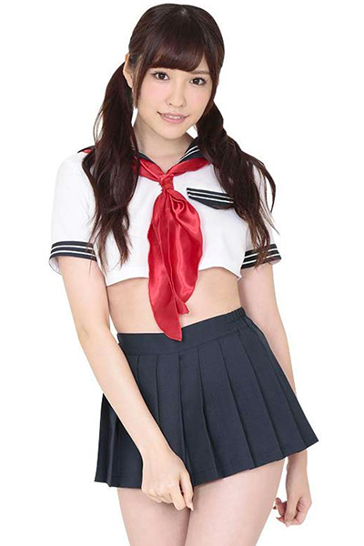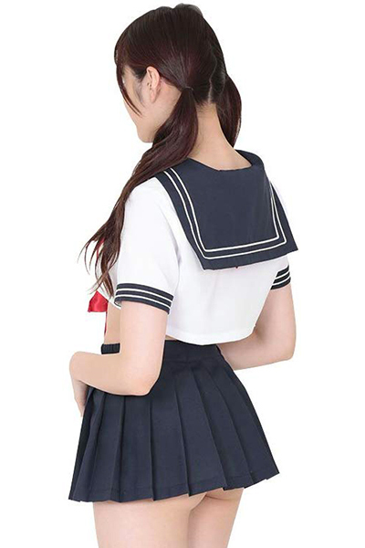 お腹がチラリ!エロカワイイ「ベリーショートセーラー服」の登場♪男女問わず人気のセーラー服ですが、このセーラー服は一味違う!トップスはお腹が見えちゃうほどのマイクロ丈となっていて、スカートからもお尻がチラリ。