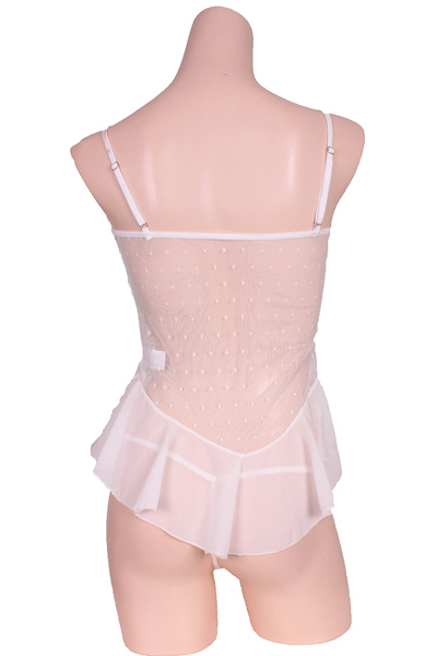 フリルとレースで可愛さ増しベビードール&Tバックセット ホワイト