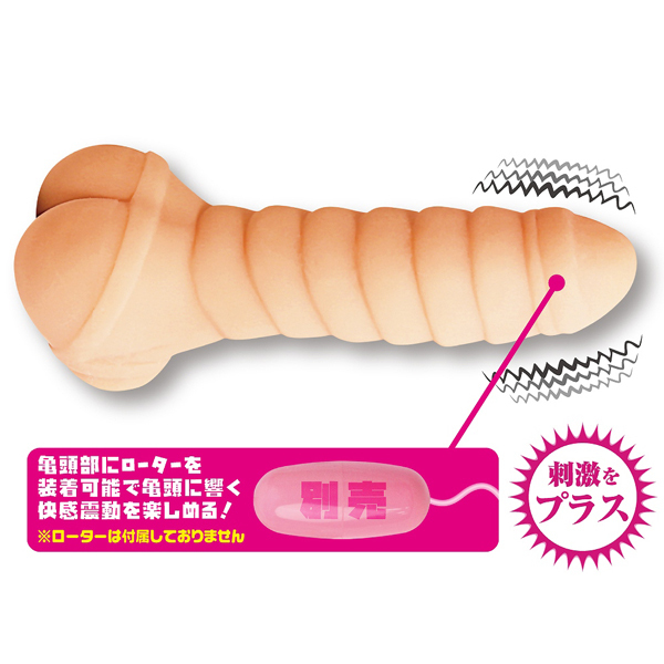 お尻の穴の先はサオをゴリっと刺激するイボゾーンや、亀頭と裏筋にゾリゾリ刺激を加える横ヒダ空間、亀頭を咥え込み集中刺激する肉突起ゾーンを配置し、緩やかな快感でフィニッシュまで導きます♪先端部にはローターを装着することも出来るため、市販のローターをプラスして亀頭へ快感振動を与えることも可能!1つで多様な楽しみ方をしていただけるホールとなっています♪ローション付属