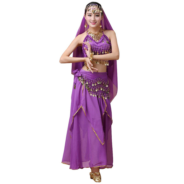ミステリアスな雰囲気を醸し出すパープルカラーと、アオザイコスプレのようなボディラインを美しく魅せるデザインが、華麗に舞う女性をより一層引き立たせてくれます♪ハロウィン仮装としてはもちろん、アラビアンダンスやベリーダンスの衣装としても最適です!