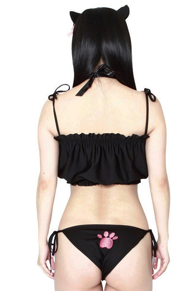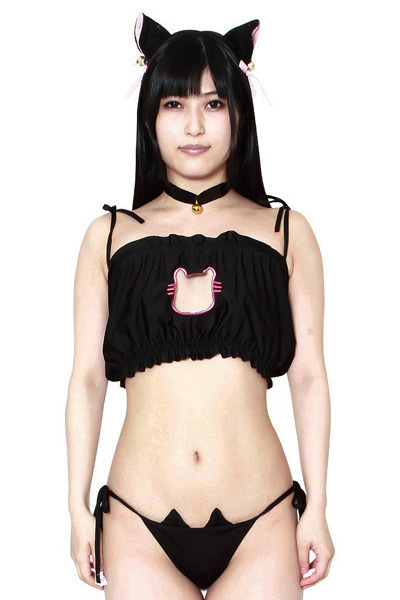 ネコ好きにはたまらない可愛らしい黒猫コスプレが登場!胸元を猫マークにくり抜いたトップスや猫耳がついた紐パンツなど、いたるところにネコモチーフを入れたとっても可愛らしいデザイン♪更に黒猫ガールになりきれる猫耳カチューシャもセットとなっております。
