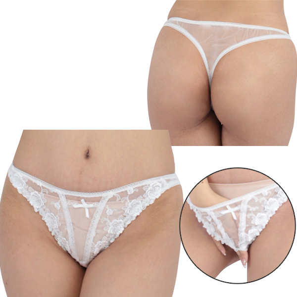 > 極薄シースルー&レースオープンTバック ホワイト