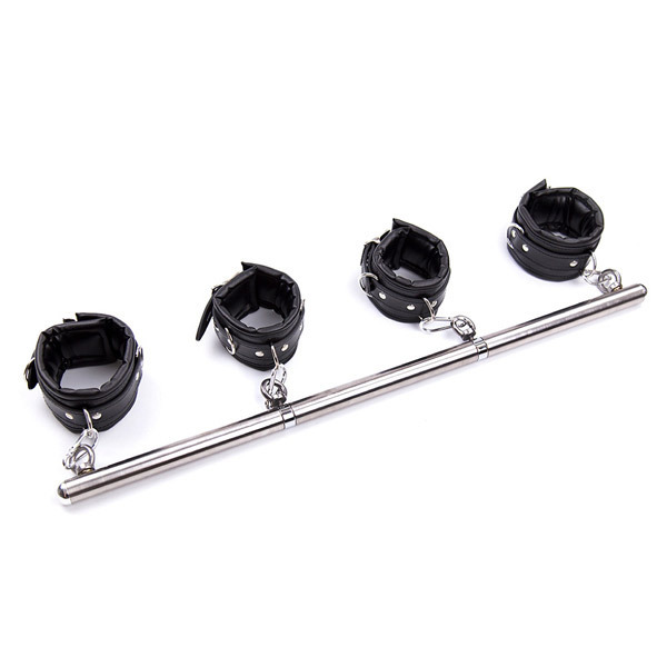 M字開脚や背面での四肢拘束が出来る本格的な拘束棒と手枷、足枷のセット商品です。