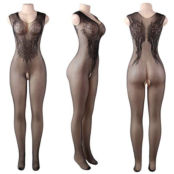 縦に柄が織り込まれているので着やせ効果も期待できるオープンネットボディストッキング。