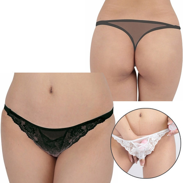 > ローターポケット付きフラワーレースシースルーTバック ブラック