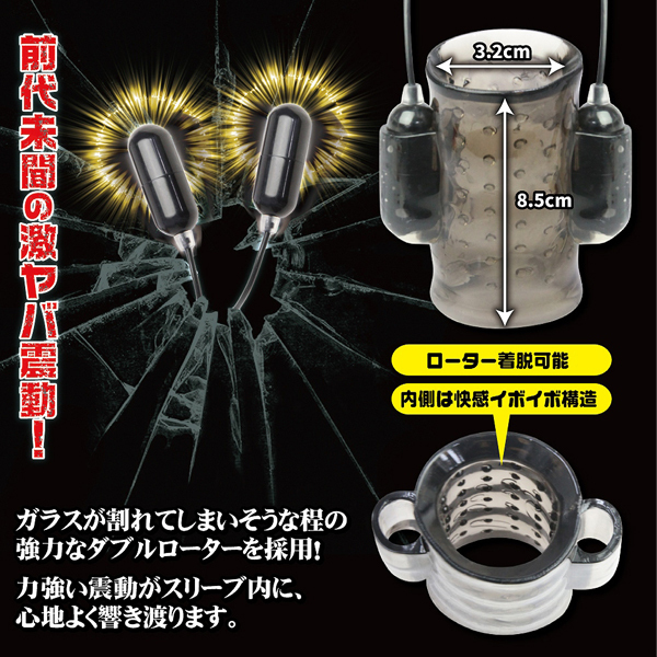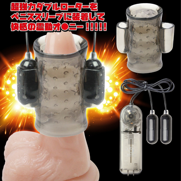 超激震ローターとイボイボ構造のペニススリーブで快感責め!ダブルローター付きの電動ペニスサック。