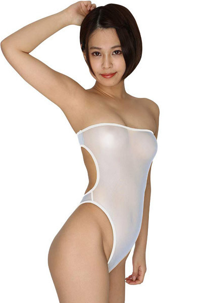 極薄生地から透けて見える素肌がセクシーな日本製ハイレグコスプレ(白)。