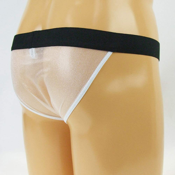 太めの黒ゴムと透け感のある生地で逞しさを演出する日本製フルバック(白)。